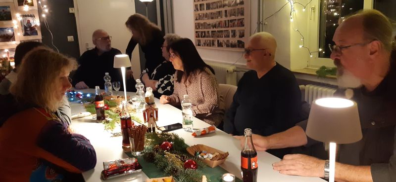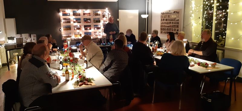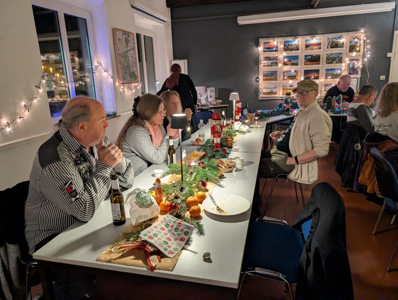 Am 13. Dezember trafen wir uns zur Stammtisch-Weihnachtsfeier 2025 im "Alten Bauhof". Udo begrüßte die Stammis zum gemütlichen Abend. Ina hatte uns ein Weihnachtsquiz vorbereitet, wo Gruppenarbeit gefragt war und was allen viel Spaß gemacht hat. Das italienische Bufett, besinnliche Geschichten und das lustige Schrottwichteln rundeten den Abend ab. Es war eine schöne gemeinsame vorweihnachtliche Feier im geschmückten Raum. (Margit)
